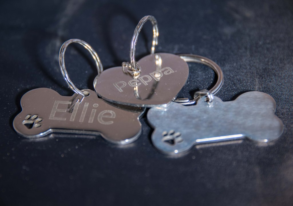It could be a stainless steel dog tag or a heart shaped key ring tag for example